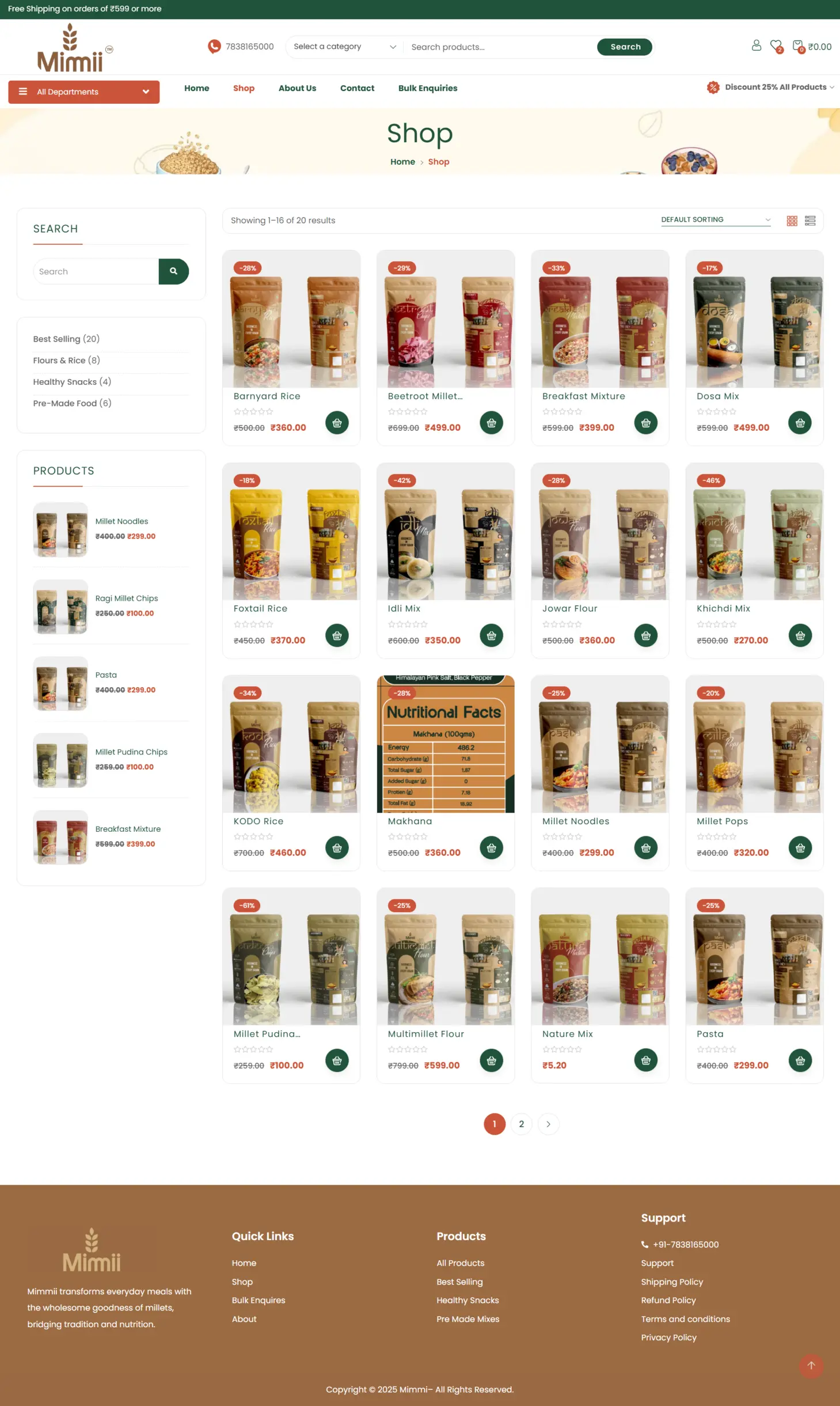 I built a conversion-focused e-commerce website for a health food brand specializing in millets. Using clean visuals, custom categorization, and user-friendly layouts, we made it easy for customers to browse, filter, and buy products. I integrated a secure checkout, custom pricing offers, and SEO-ready content.
